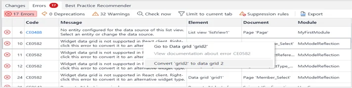 - 실제 스키마가 다르면 ComboBox 초기값/매핑 이슈가 재현될 수 있으니 엔티티/속성 치환에 주의 데이터 도우미: DatabaseReplication / Database Connector / Mx Model Reflection - DatabaseReplication: 외부 DB 스키마 → Mendix 엔티티 복제 → 소스(JDBC/사용자/스키마) → 매핑(테이블→엔티티, 컬럼→어트리뷰트) → 풀 로드 → 증분 스케줄 - 대용량은 배치 크기/트랜잭션 전략/로그 레벨로 튜닝